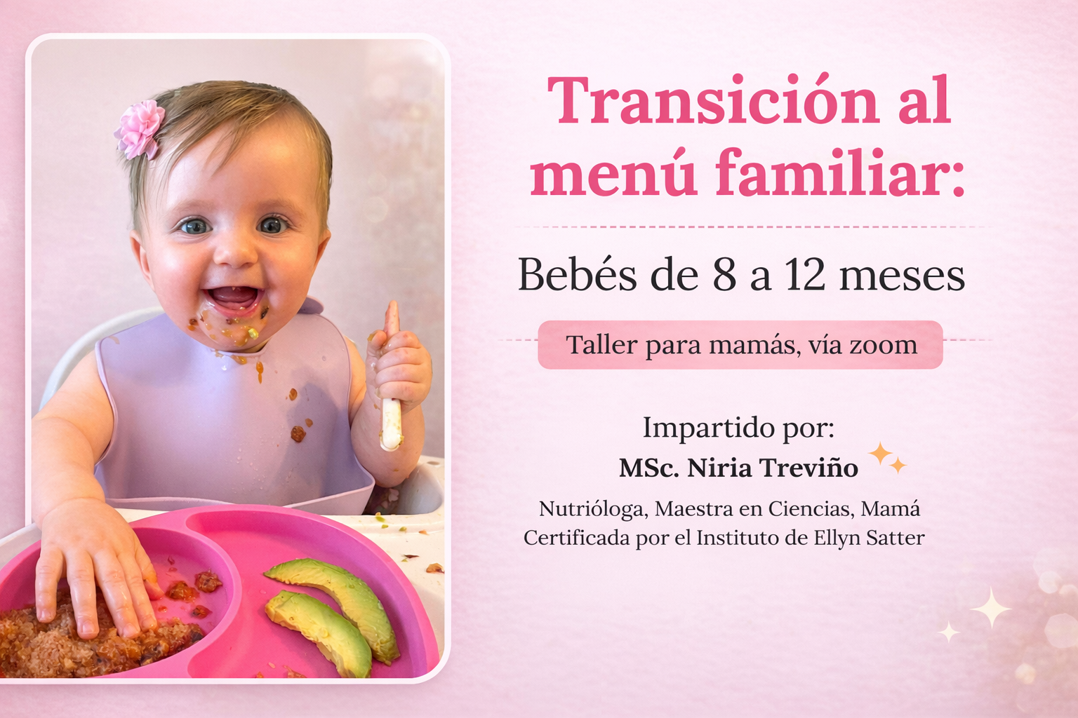Para mamás con bebés de 8 a 12 meses que ya iniciaron alimentación complementaria y se encuentran en etapa de transición.
